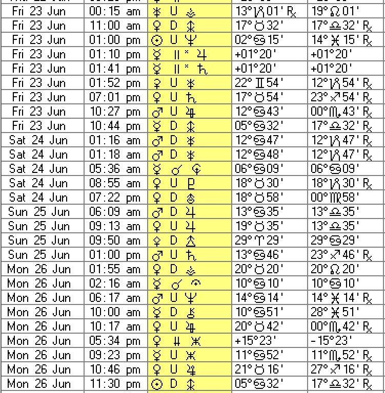 Below are the main aspects between the Moon and Planets, the Inner Planets and the Outer Planets, and finally between Mars and the Outer Planets. The format has changed, there is more info, but only for a month.